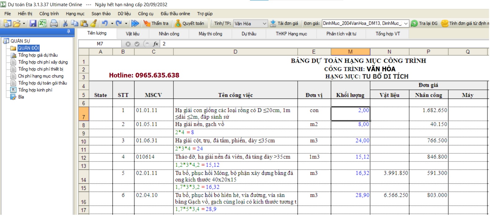 lập dự toán công trình tu bổ di tích văn hóa