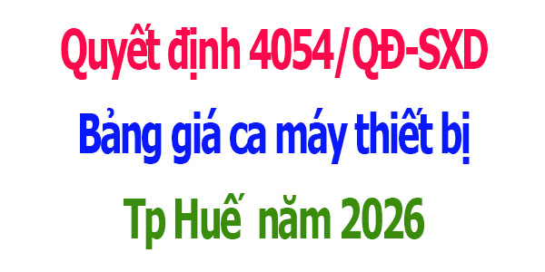 Bảng giá ca máy thành phố Huế năm 2026 Quyết định 4054/QĐ-SXD